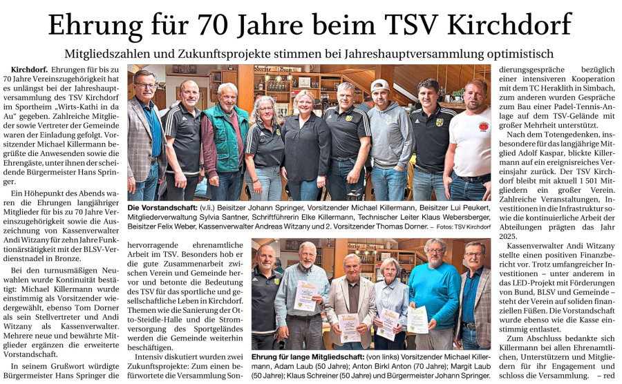 Neue Vorstandschaft 2026: von Links: Bürgermeister; 1.Vorstand Killermann Michael, Beisitzer Lui Peukert; Mitgliederverwaltung Santner Sylvia; Schriftführung Killermann Elke; Technischer Leiter Webersberger Klaus; Beisitzer Weber Felix; Kassenverwaltewr Witzany Andreas und 2.Vorstand Dorner Thomas