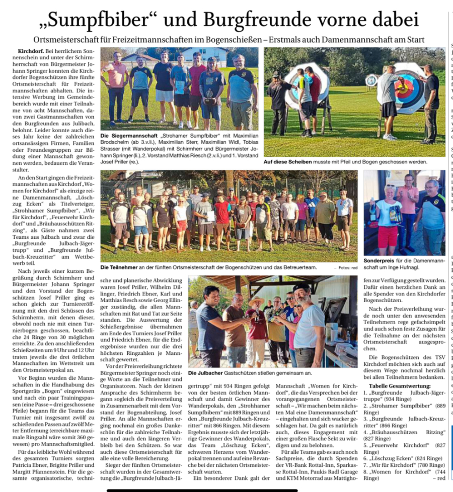 Mitglieder der Bogenschiessabteilung des TSV Kirchdorf und berechtigte Gäste
